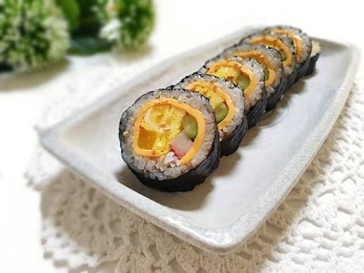 - 🌾 Main ingredients: Rice, pickled radish (단무지), spinach, carrot, egg strips, and ham or crab sticks.